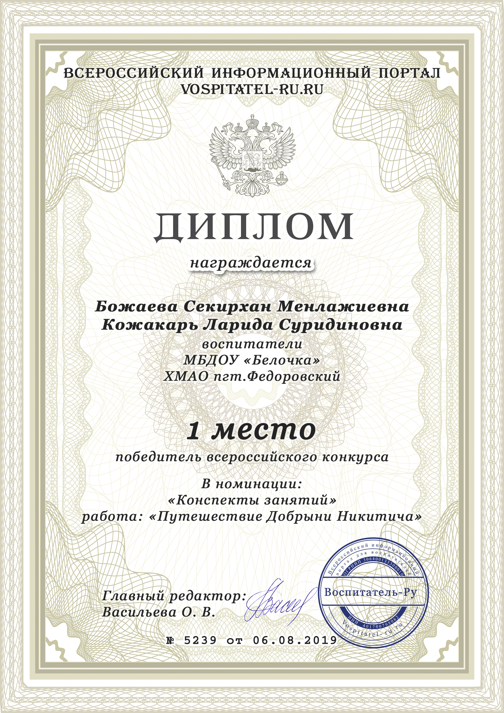 (выдан: Просвещение г.Москва, 06/08/2019)