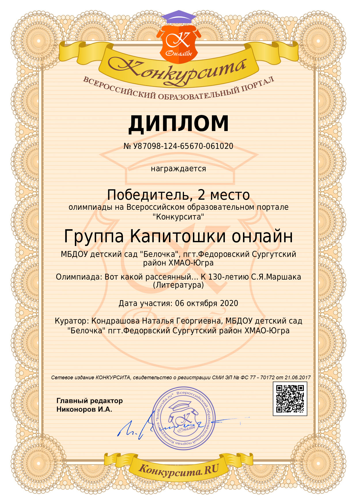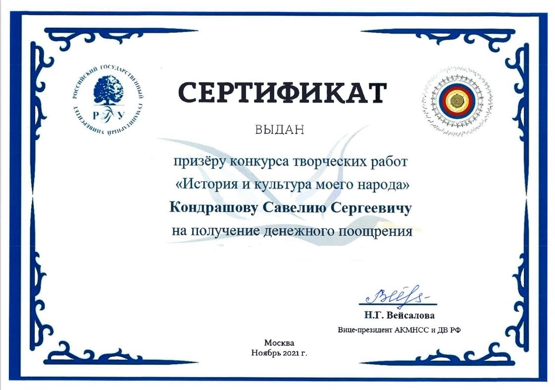 (выдан: оргкомитет официального сайта "Моя Югра", 09/11/2020)