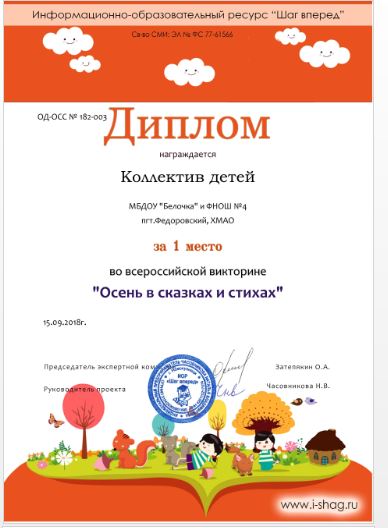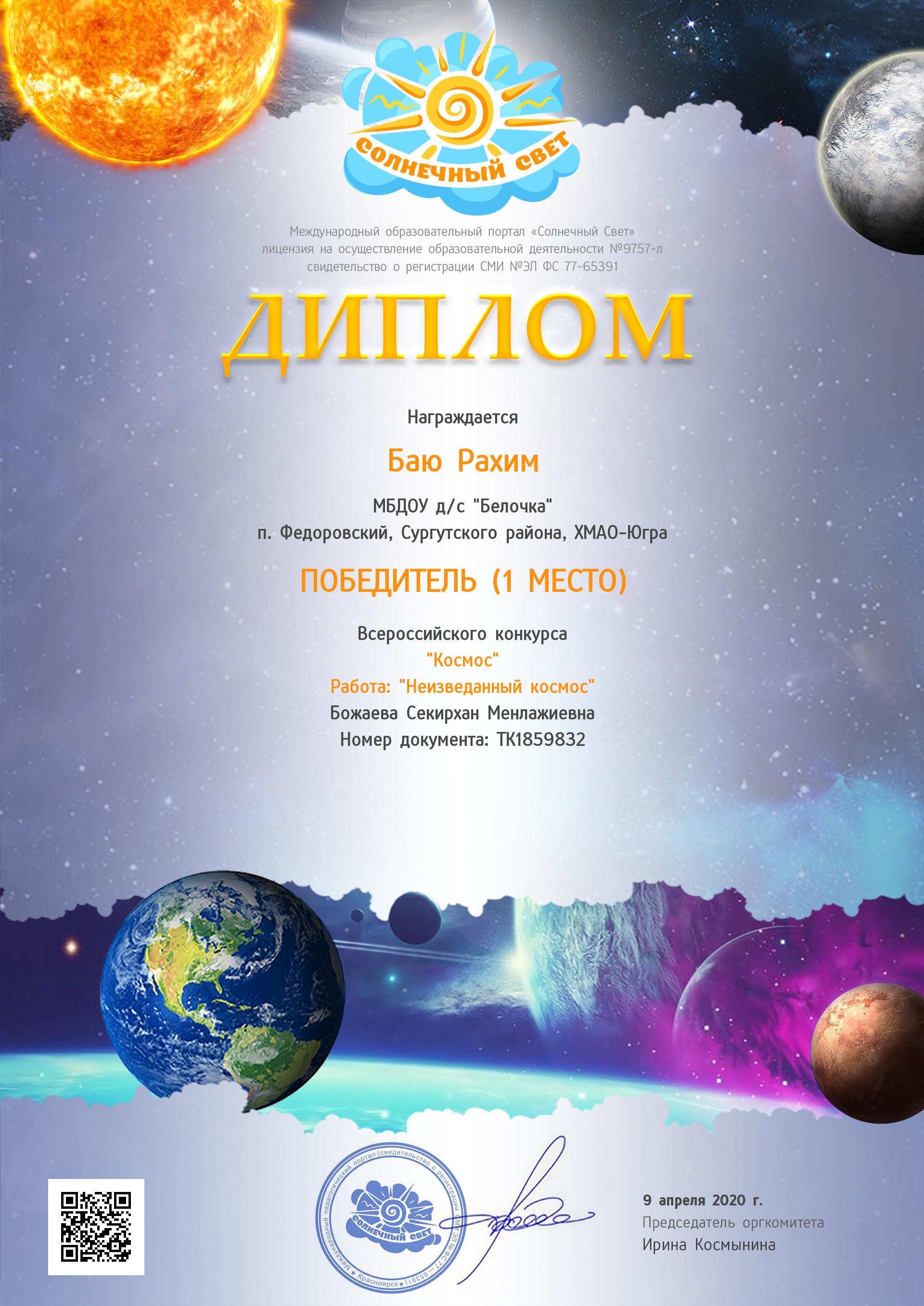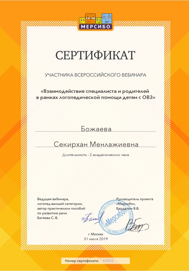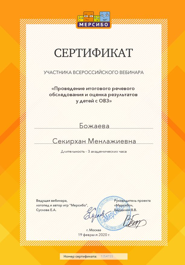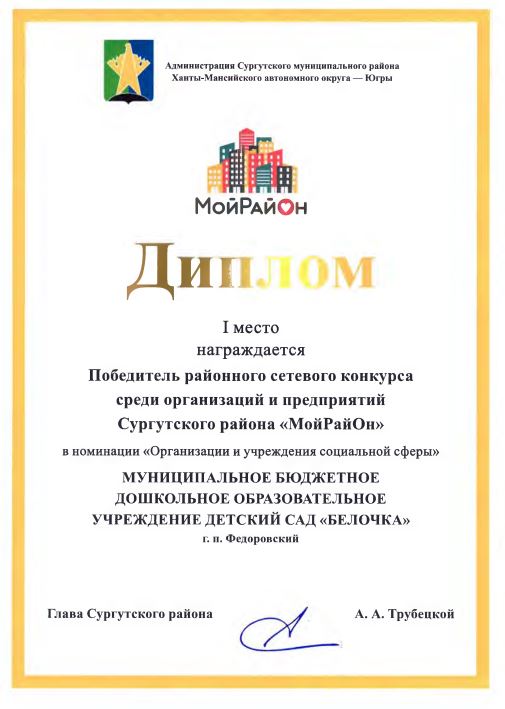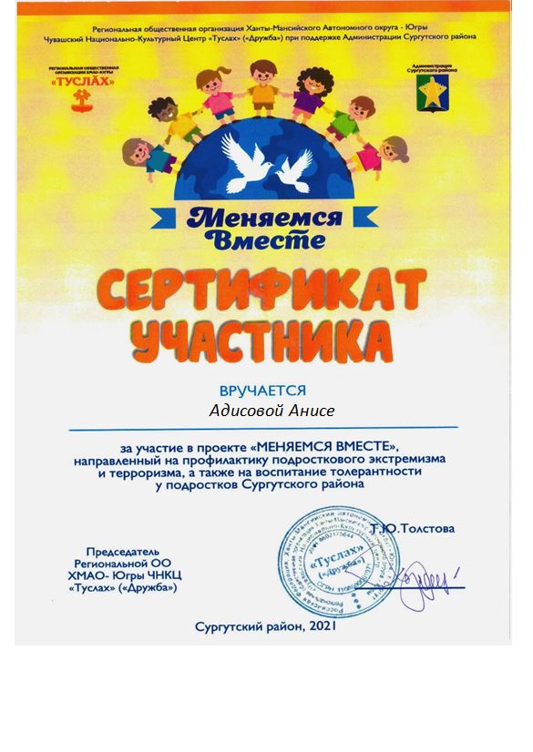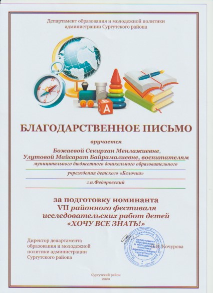 (выдан: департамент образования и молодежной политики администрации Сургутского р-на , 01/08/2020)