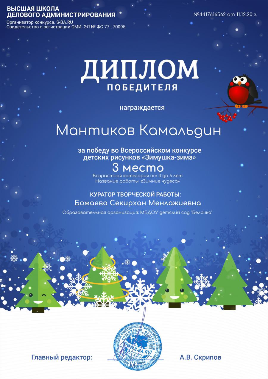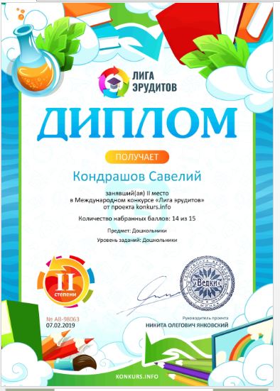 (выдан: Академия интеллектуального развития, 07/12/2020)