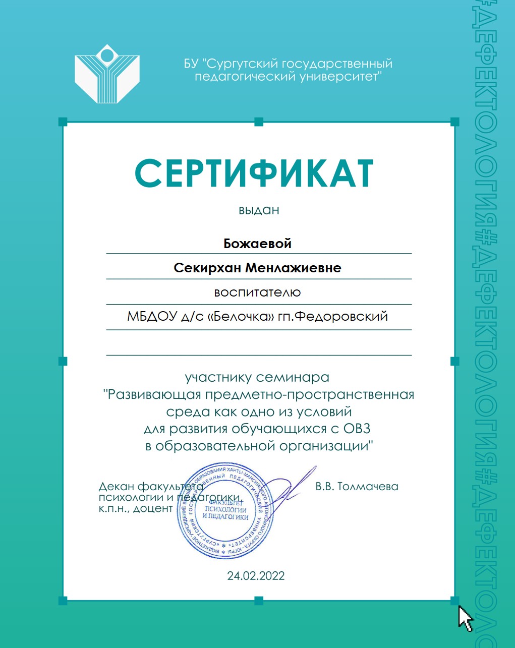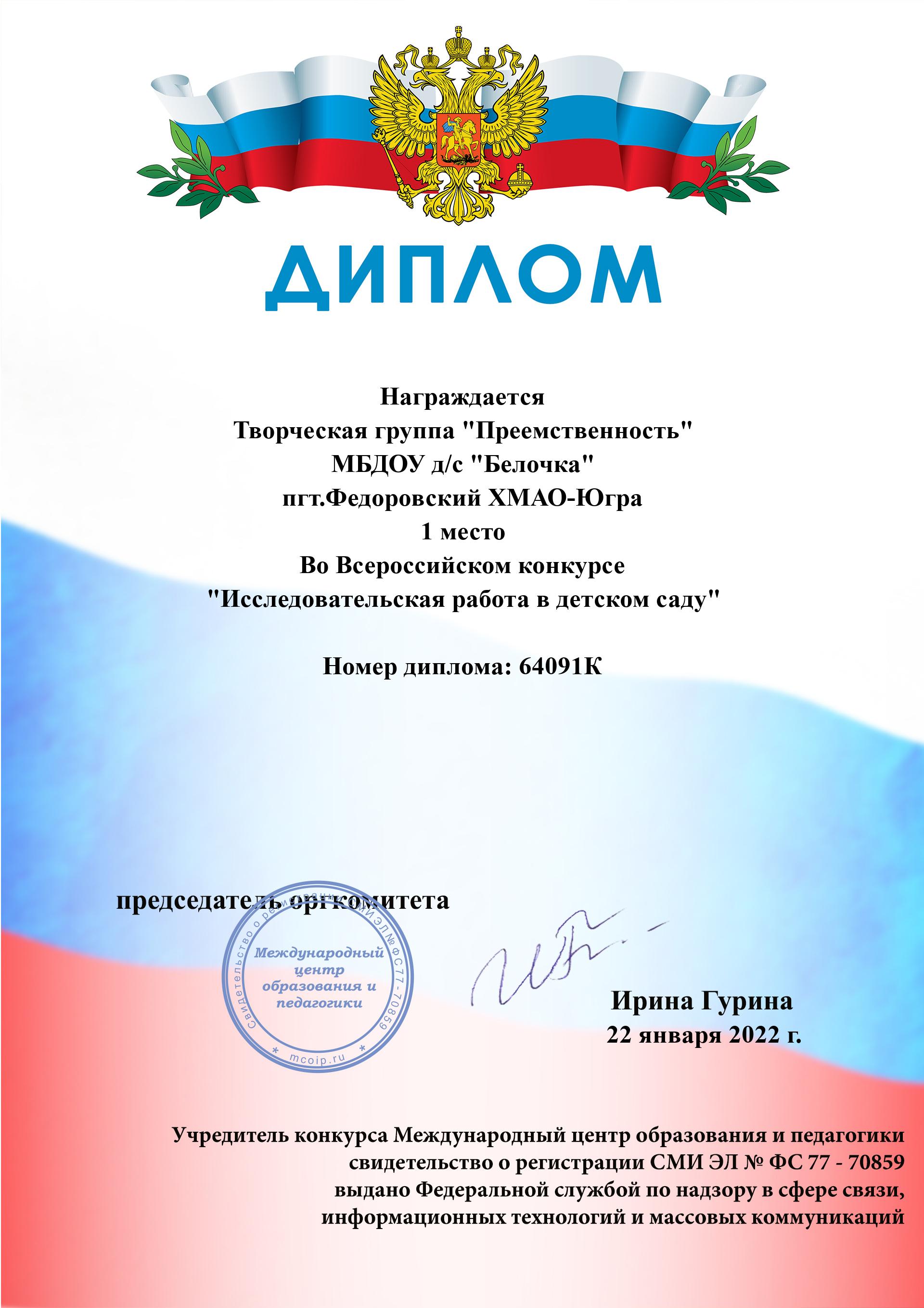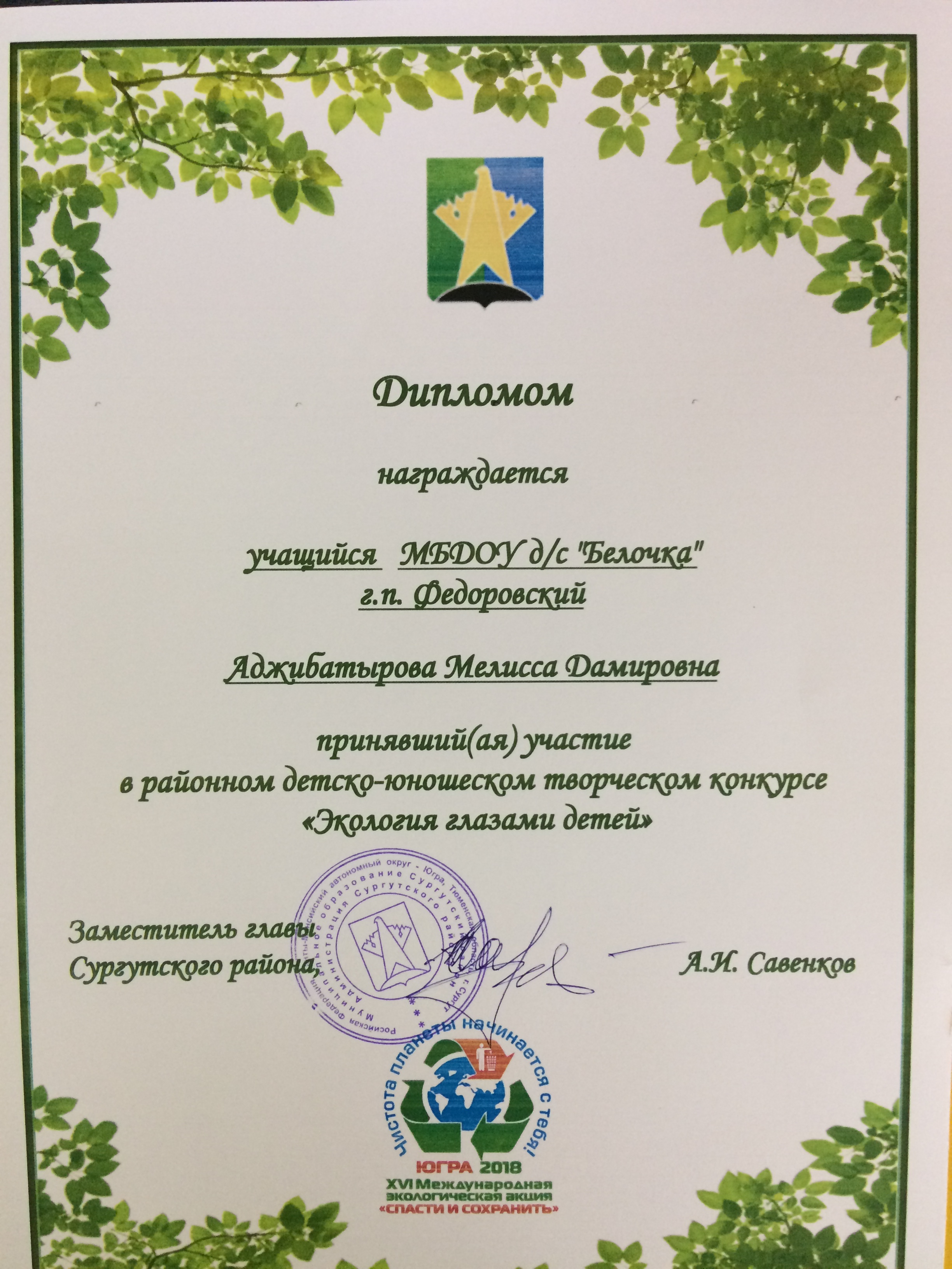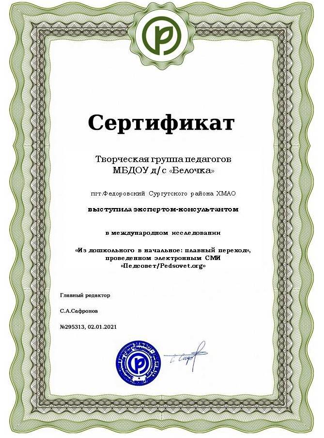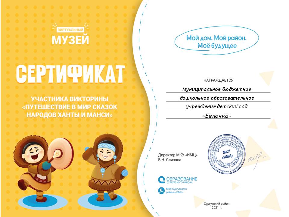 (выдан: департамент образования и молодежной политики администрации Сургутского р-на , 29/01/2021)