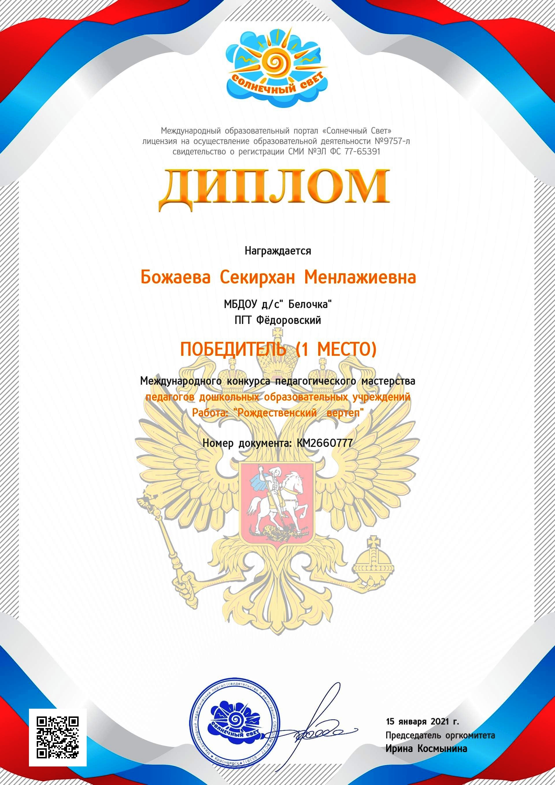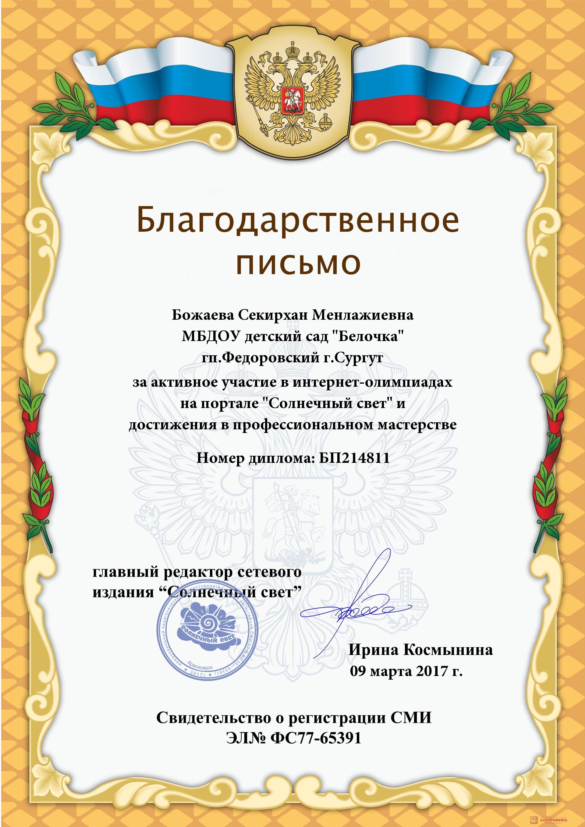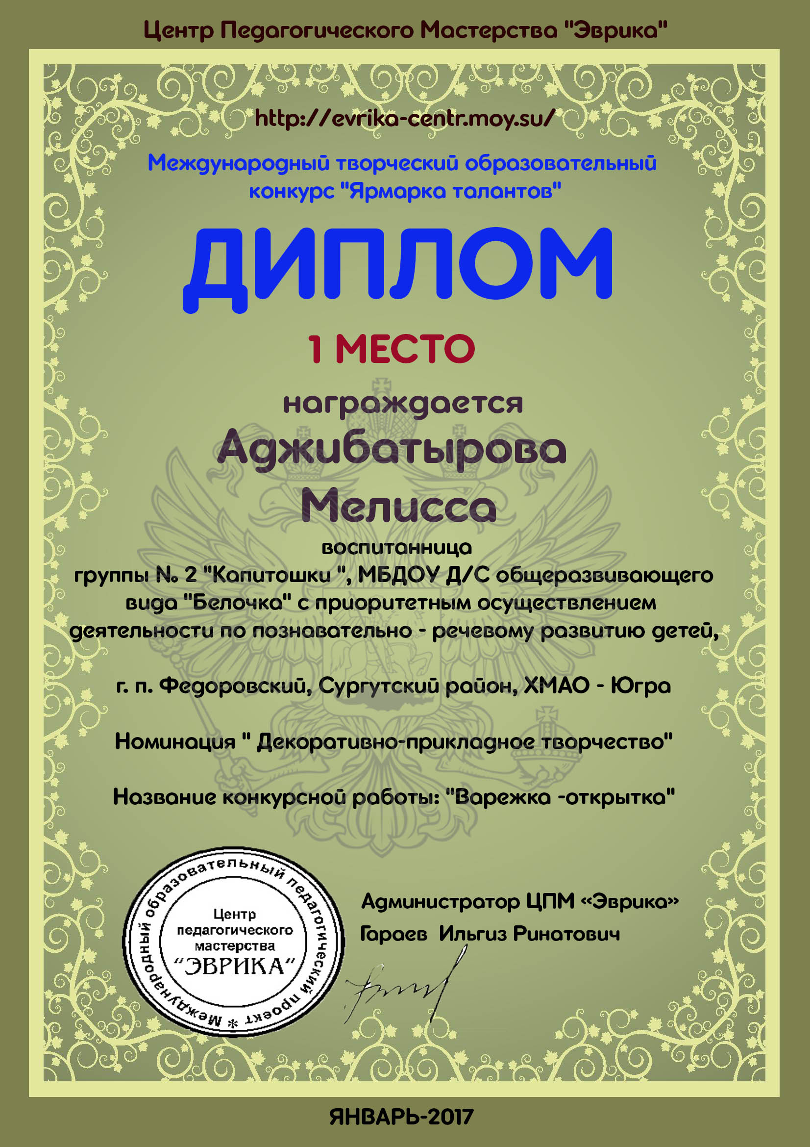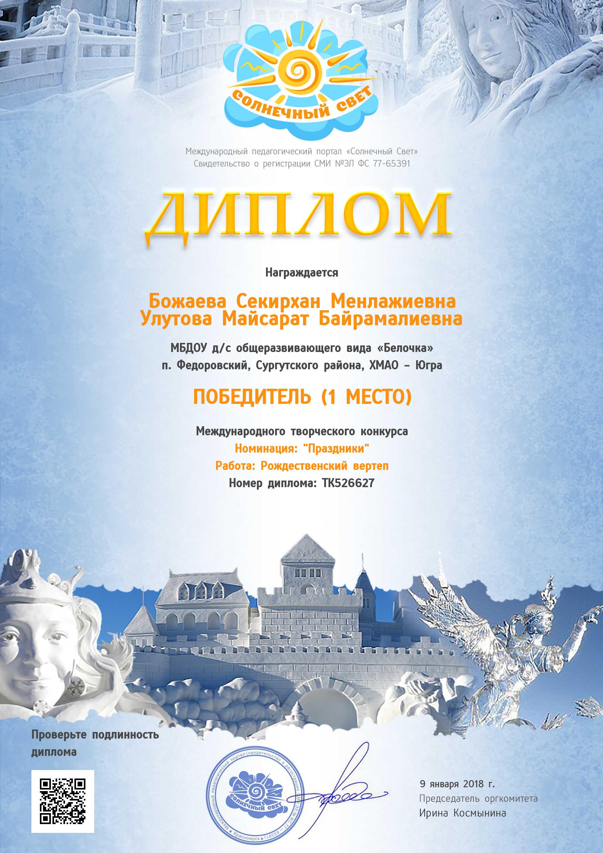 (выдан: департамент образования и молодежной политики администрации Сургутского р-на , 29/01/2021)