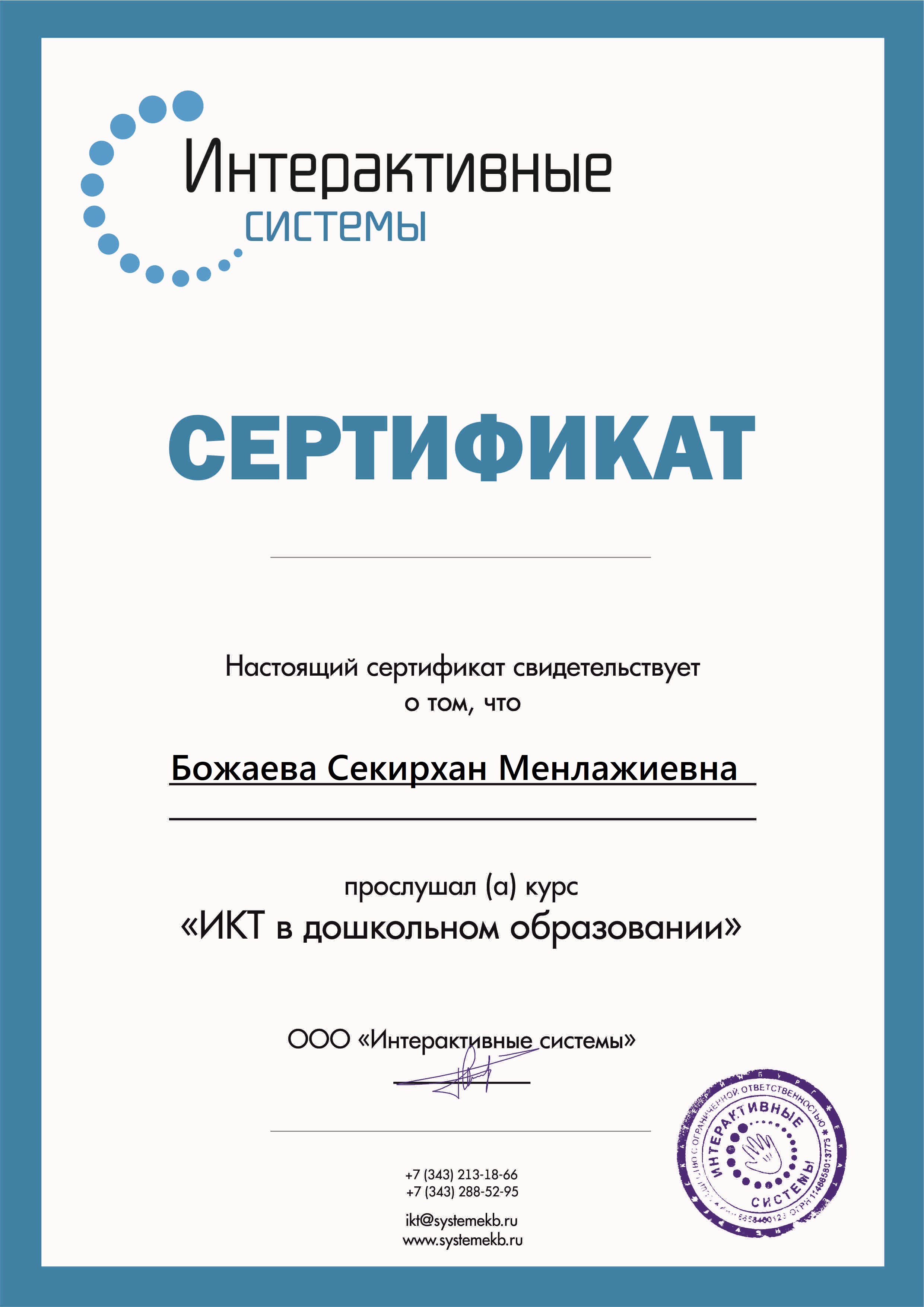 (выдан: ООО "Интерактивные системы", 15/11/2018)