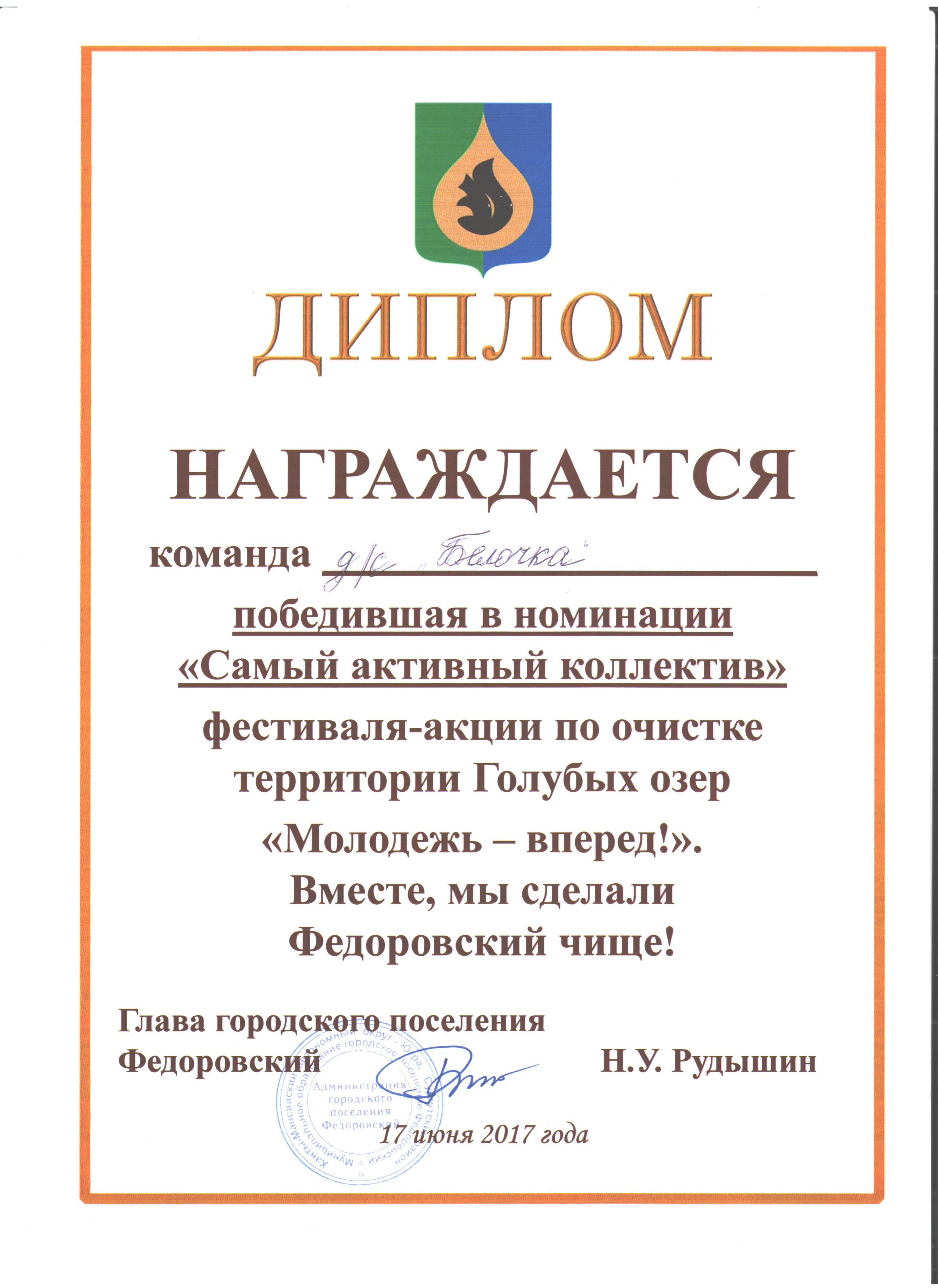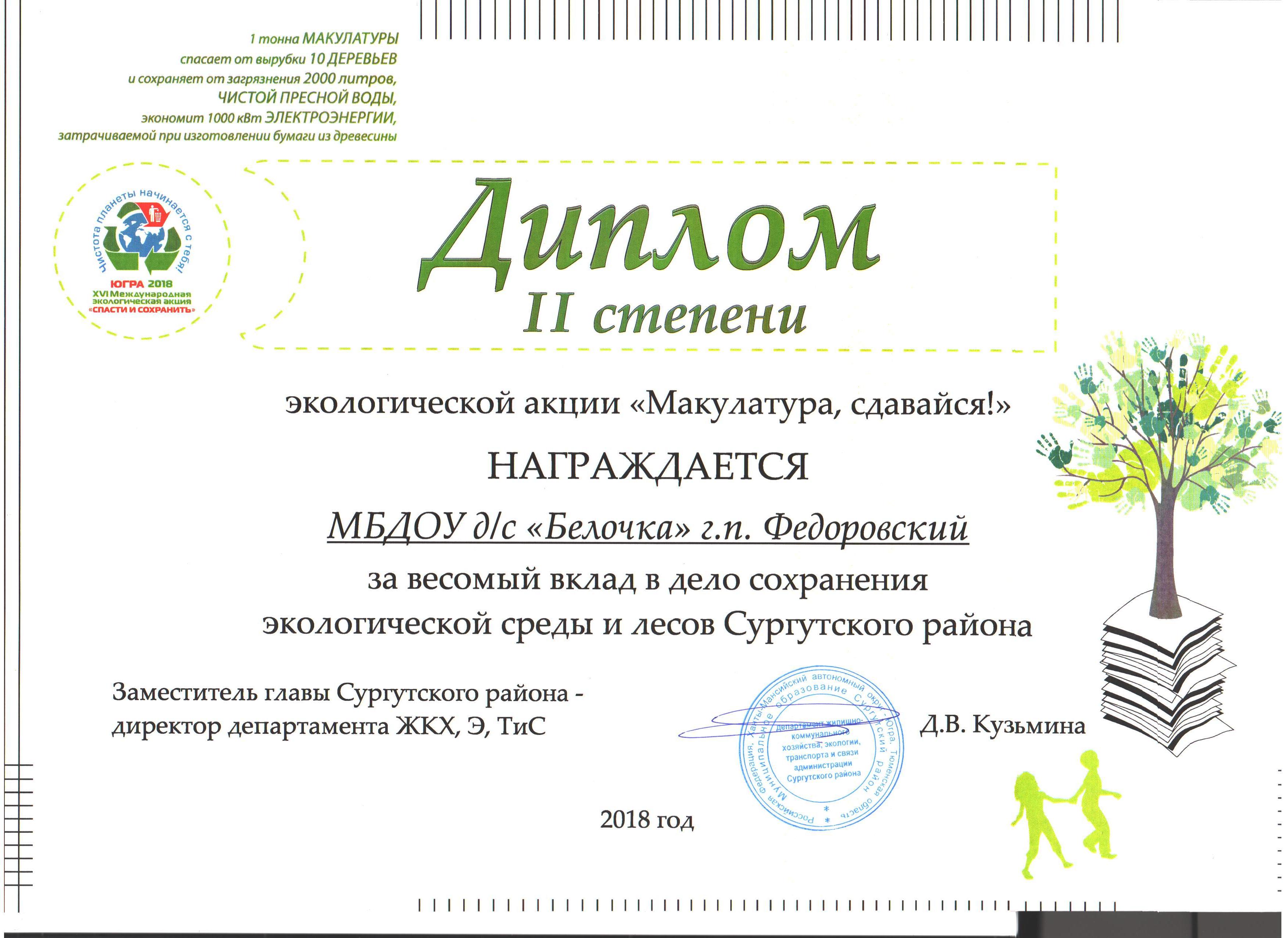 победителю - II место, в региональном конкурсе "Моя Югра" , в номинации "Синичкин день"