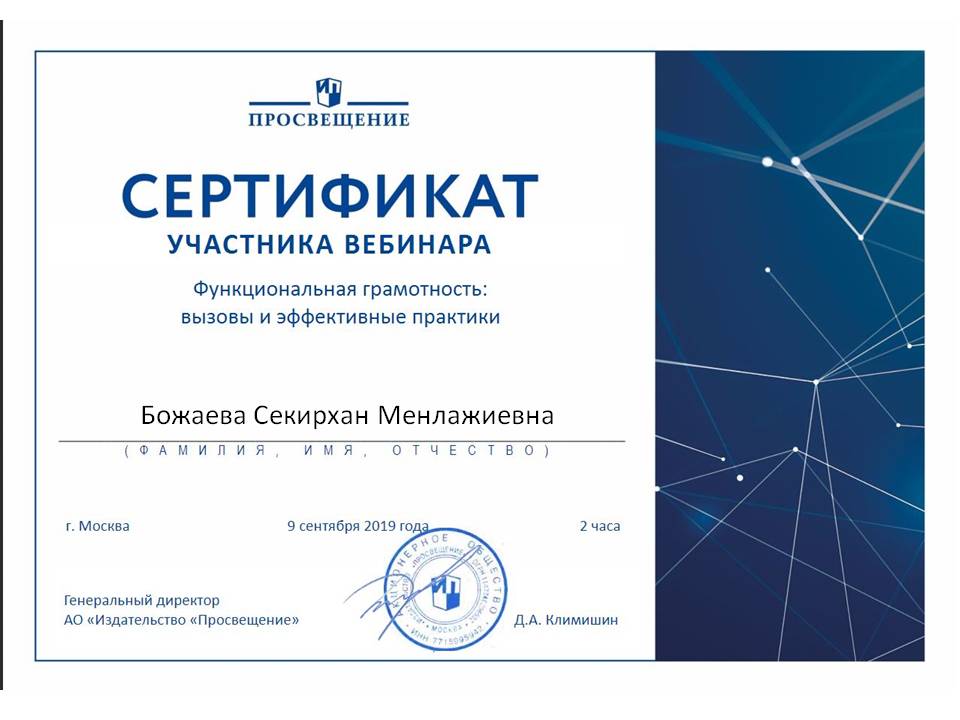 (выдан: Просвещение г. Москва, 09/09/2019)