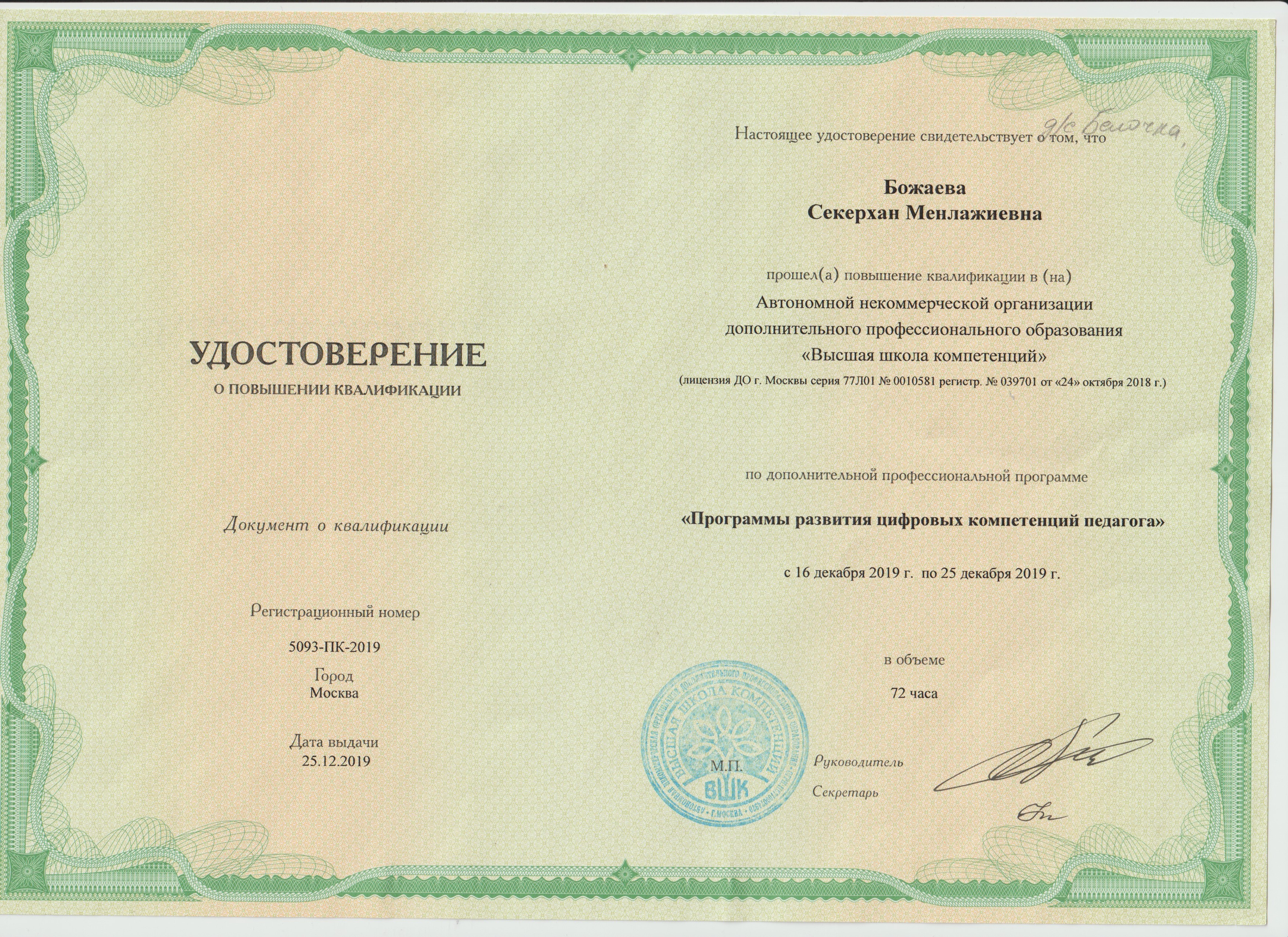 КПК "Программа развития цифровых компетенций педагога"
