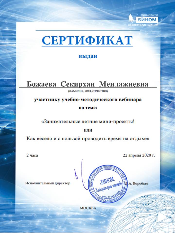 вебинар "Занимательные летние мини-проекты" 2020г.